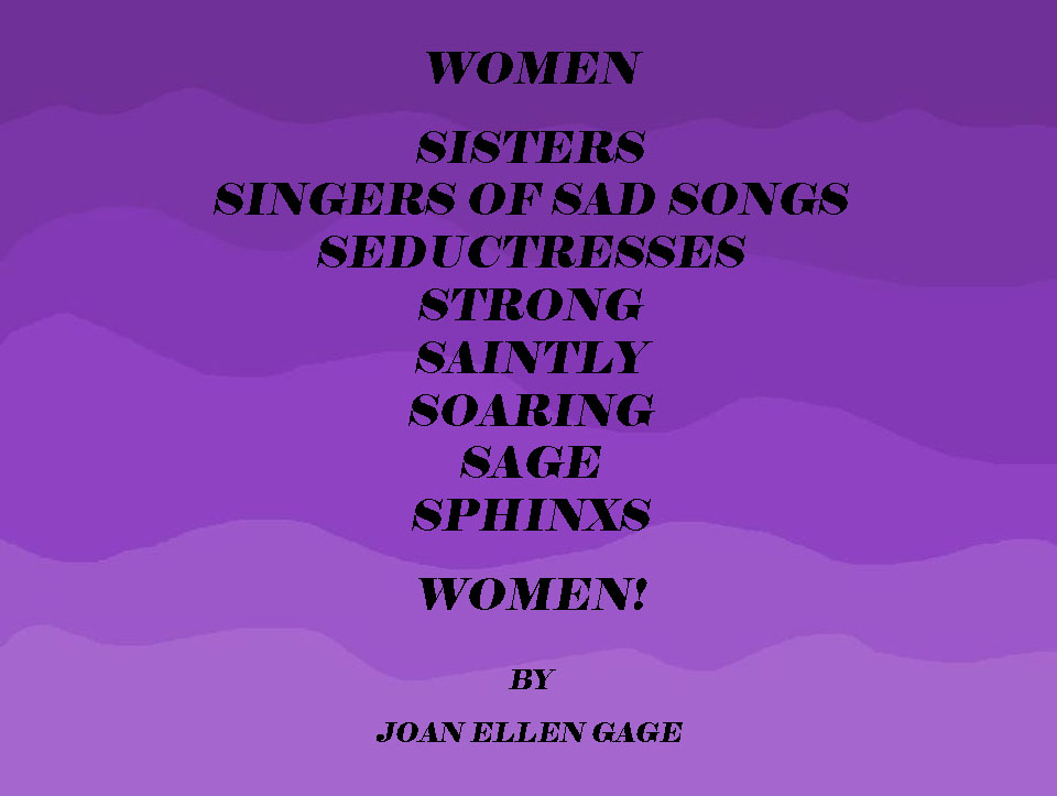 ©All creative works by Joan Ellen Gage are her exclusive property, and Joan maintains the legal rights to them.